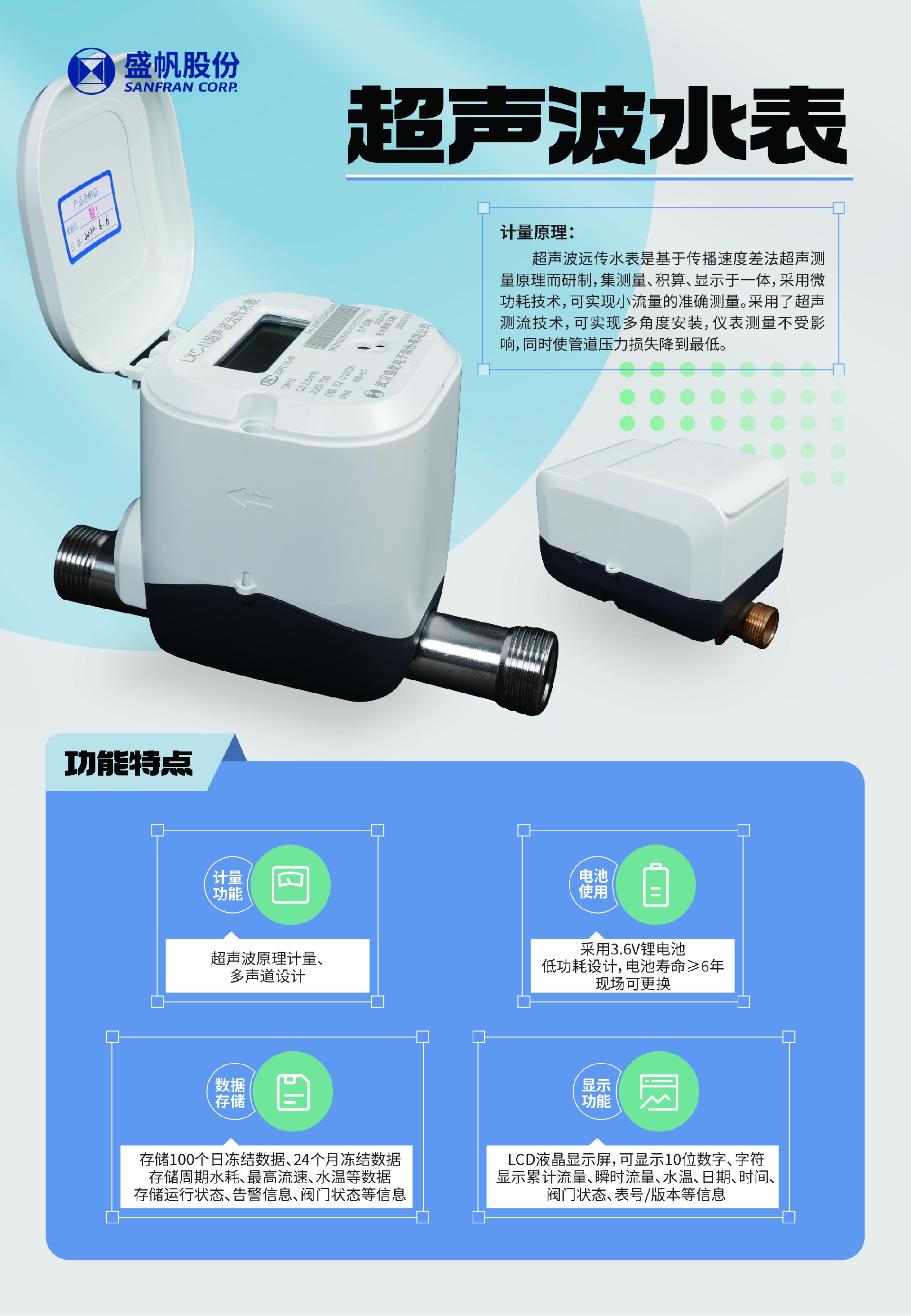 1、超聲波原理計量、多聲道設計;