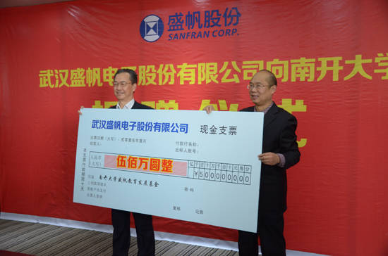 1月24日,武漢盛帆電子股份有限公司向南開大學(xué)捐贈人民幣500萬元,設(shè)立“南開大學(xué)盛帆教育發(fā)展基金”作為學(xué)校的教育發(fā)展···