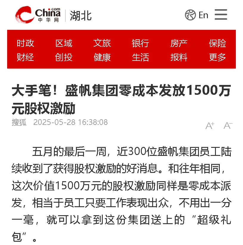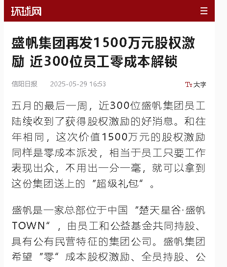 五月的最后一周,近300位盛帆集團(tuán)員工陸續(xù)收到了獲得股權(quán)激勵(lì)的好消息。和往年相同,這次價(jià)值1500萬(wàn)元的股權(quán)激勵(lì)同樣是零···